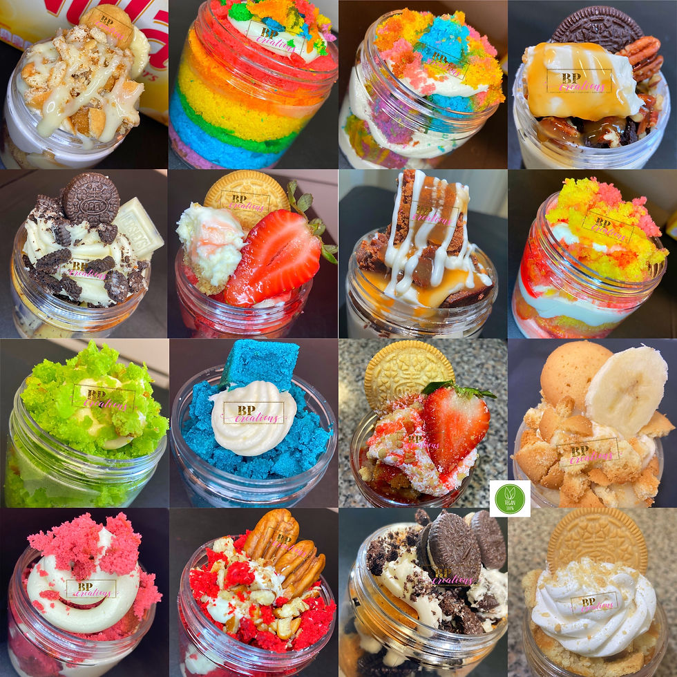 Each jar contains two servings, perfect for sharing with a friend or loved one. Indulge in a delightful treat, layered with moist cake, rich frosting, and delicious toppings that will have you coming back for more.
